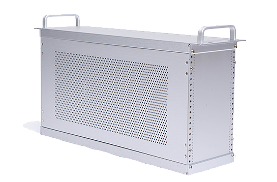 B型機箱由上蓋板,下蓋板,前面板,后面板,側板,前后梁,帶耳把手等配件組裝而成,為機架式機箱,把手兩側帶有耳朵直接固定的機器內。